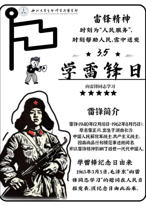 今年3月5日是全国第58个“学雷锋纪念日”。雷锋精神,是以雷锋的名字命名,以雷锋的精神为基本内涵,在实践中不断丰富和发展着的革命精神。半个多世纪以来,雷锋精神历久弥新,如今其更是成为了全心全意为人民服务的代名词。为了宣传弘扬雷锋精神,让雷锋精神不断绽放出新的光芒,西北大学437437必赢国际网址于当天开展系列志愿活动,传承革命精神。
