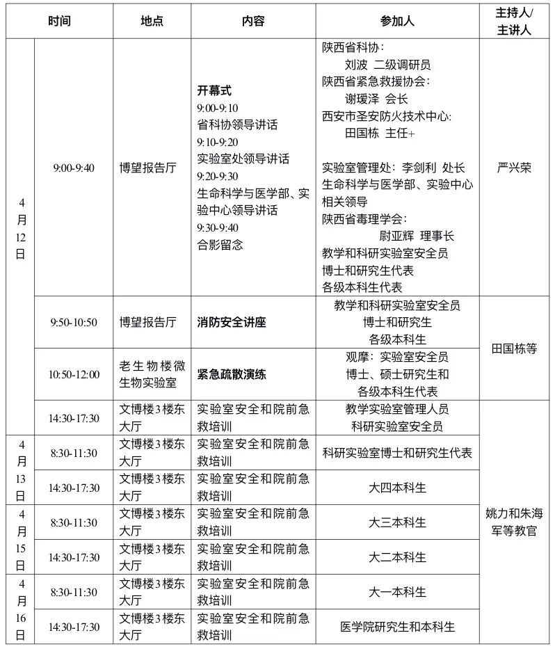 为使广大师生了解更多的实验安全常识,提高安全防范意识和能力,真正落实“安全第一,预防为主”的实验方针,我院第一届实验室安全文化月将于2021年4月12日(下周一)正式启动,4月12日-4月16日,活动将面向437437必赢国际网址全体师生,安排消防安全讲座、紧急疏散演练、实验室安全和院前急救(在病人到达医院前所实施的现场抢救和途中监护的医疗活动,如心肺复苏、外伤包扎等)培训诸多环节,通过专业老师的指导,进一步提高师生的安全意识。