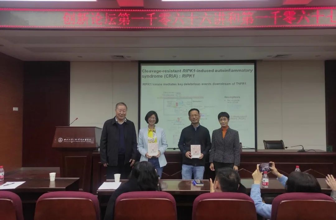 随后俞晓敏研究员作了题为“Medical Genetics in the Autoimmune Diseases and Atopic Diseases”的学术报告,主要介绍了四种基因,即 OTULIN,TPSAB1,PGM3和RIPK1的研究现状。俞晓敏老师通过多个家系找到遗传上的线索,确定致病基因,并从体外实验证明和分子生物学实验方法探究其致病机制,以找到有效的靶向治疗药物,这对于人类自身炎症性疾病的临床治疗具有重要意义。