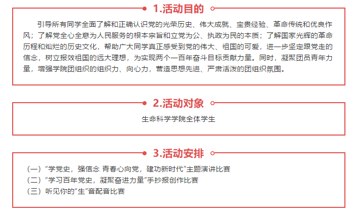 为在我院基层团组织广泛扎实开展党史学习教育,丰富团员青年组织生活,提升学生团干部综合能力,加强各级团支部的引领力、凝聚力,根据校团委相关通知,我院团委特举办“学党史、强信念、跟党走”学习教育系列活动,现将有关安排如下。
