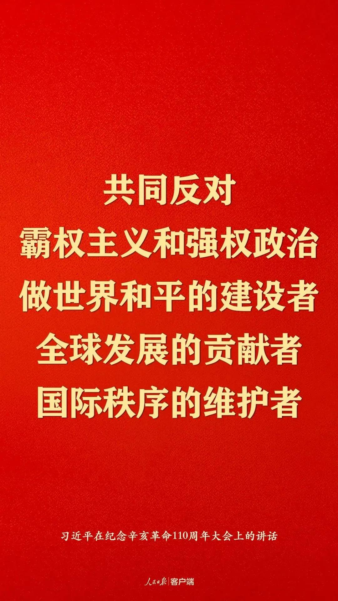 10月9日上午,纪念辛亥革命110周年大会在北京人民大会堂隆重举行。中共中央总书记、国家主席、中央军委主席习近平出席大会并发表重要讲话。