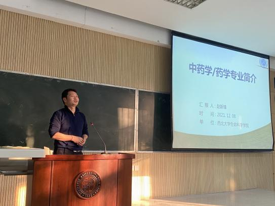 活动伊始,由学院中药学系主任赵新锋教授给同学们带来题为《中药学学科发展现状》的讲座。赵新锋教授围绕西北大学中药学、药学的过往历史、发展现状与就业前景等方面给同学们展开介绍。他说道:“中药学专业注重中医药学经典传承和创新,强调学生科研思维和生产实践能力的过程培养。”鼓励学生进入各平台接受科研思维和实验动手能力训练,拓宽基础知识、增强生产实践技能,培养出具有学术视野的人才。最后,他鼓励中药学专业的同学们要热爱自己的专业,顺应时代的潮流,在新时代的背景下运用好、发挥好具有悠久历史的传统中药学知识。