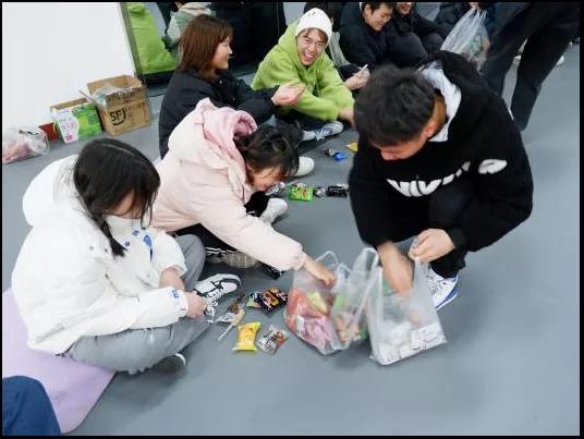 活动开始之前,由班主任与班委们一块给同学们分发小零食,营造了一个轻松愉悦的氛围。