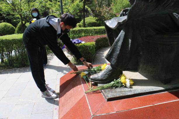 4月5日学院学生会代表前往岳劼恒先生像前举行祭扫活动,以寄托同学们对先贤的崇敬和哀思。岳劼恒先生1941年担任西北大学物理系主任,1947年任西北大学教务长直至中华人民共和国成立,为保护和发展西北大学做出了重大贡献,是西北大学发展的灵魂人物。同学们听完岳劼恒先生的事迹后,静静默哀,并向岳劼恒先生献花,缅怀先贤。