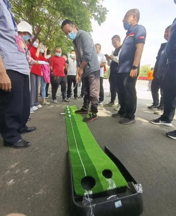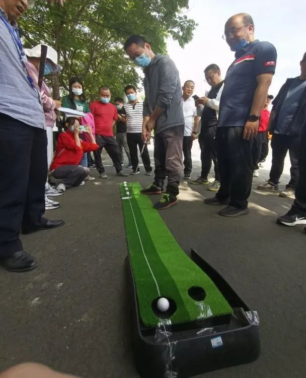 (张科进老师在参加男子教工中年组高尔夫击准决赛)