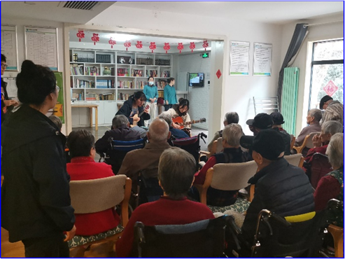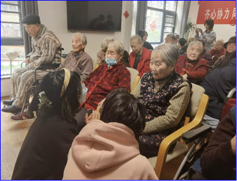 为了更好地陪伴老人,志愿者们一早就来到了敬老院。一进门,大家就受到了老人们的热情欢迎。刚开始,大家都还有些许的拘谨,不知所措,但很快,大家就和老人们聊得热火朝天,现场气氛欢乐活跃。志愿者们还给老人们表演了唱歌,与老人们一起进行击鼓传花的小游戏,老人们的脸上都洋溢着幸福的笑容。看着老人们和蔼可亲的笑容,听着老人们亲切关心的话语,大家心里都暖洋洋的。