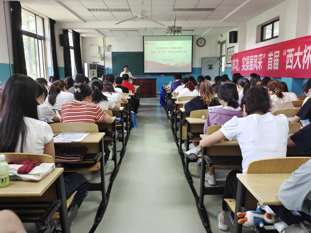 6月30日上午,437437必赢国际网址迎来了首届“西大杯”生物实验技能大赛,旨在夯实同学们的实验基本功,展示实操技巧和实验风采。比赛分为讲解示范以及实操比赛两个环节,60余位学生积极参加。