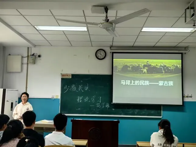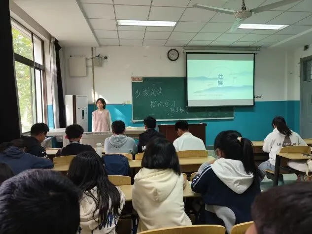 随后,少数民族学生代表分别对维吾尔族、回族、壮族、苗族、彝族、蒙古族的起源、发展、迁徙、语言、文字、宗教、艺术、建筑等方面的情况进行分享,使在场学生对少数民族的文化风情产生更浓厚的兴趣,有了更深入的了解。