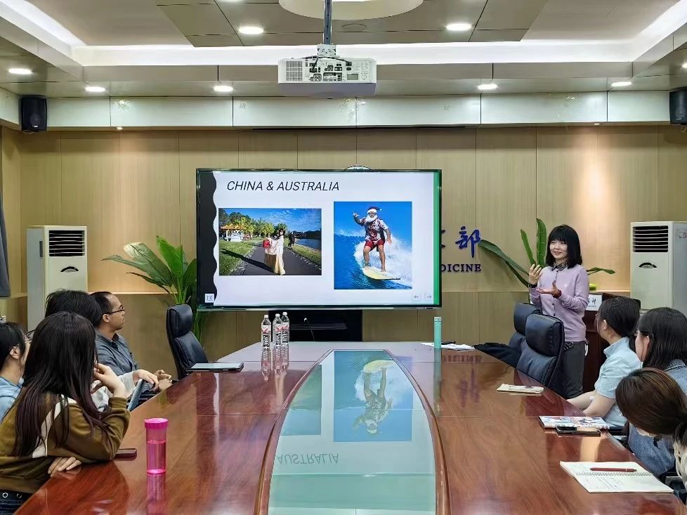 Cynthia Liu老师首先介绍了中国与澳大利亚在语言、文化等方面的差异。她提到,文化是流通的,语言、艺术、时尚、美食、故事和文学赋予了我们看待和体验世界的方式。随后,Cynthia Liu老师通过举例让大家深刻感受到了不同文化的历史、价值观、生活方式及信仰的差异,并针对一些热点问题让同学们分组进行讨论交流。最后,Cynthia Liu老师鼓励大家不论学习中有怎样的想法,对于语言来说,最为重要的就是开口,引导同学们多练习、多交流。
