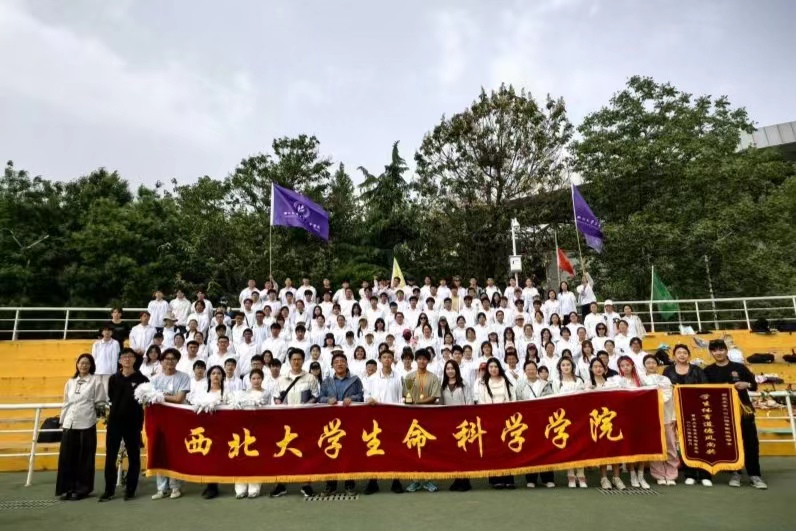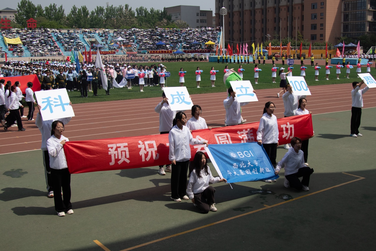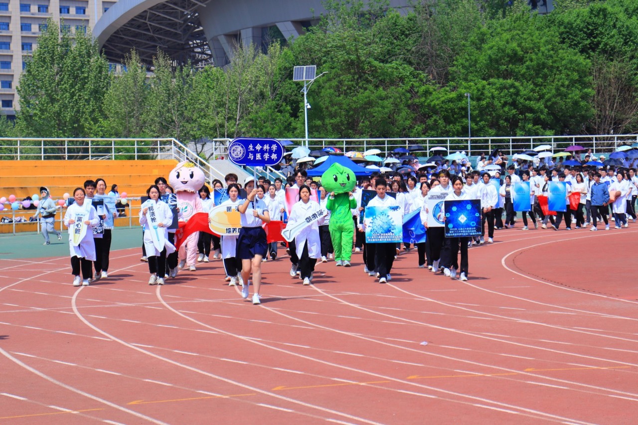 开幕式上,学院师生方阵挺胸阔步,气宇轩昂,踏着意气风发的步伐走过主席台,让全校师生感受到了来自生科的热情与活力。学院吉祥物西宝随着方阵前进,施施而行,不疾不徐。主席台前的30s表演向全校师生展示了生物学科100年的发展历程以及对本次盛会的美好祝福。