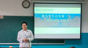 为持续加强学风建设,引导学生进一步明确学业规划和发展方向,更好的掌握保研技巧和拟推免院校信息,发挥先进典型的示范引领作用,营造良好学习风气和浓郁学习氛围, 6月3日,我院在太白校区7203教室成功举办保研经验交流会。活动由范铭沁老师主持,邀请了3位来自2020级的优秀毕业生代表进行经验分享,学院40余名同学参加。