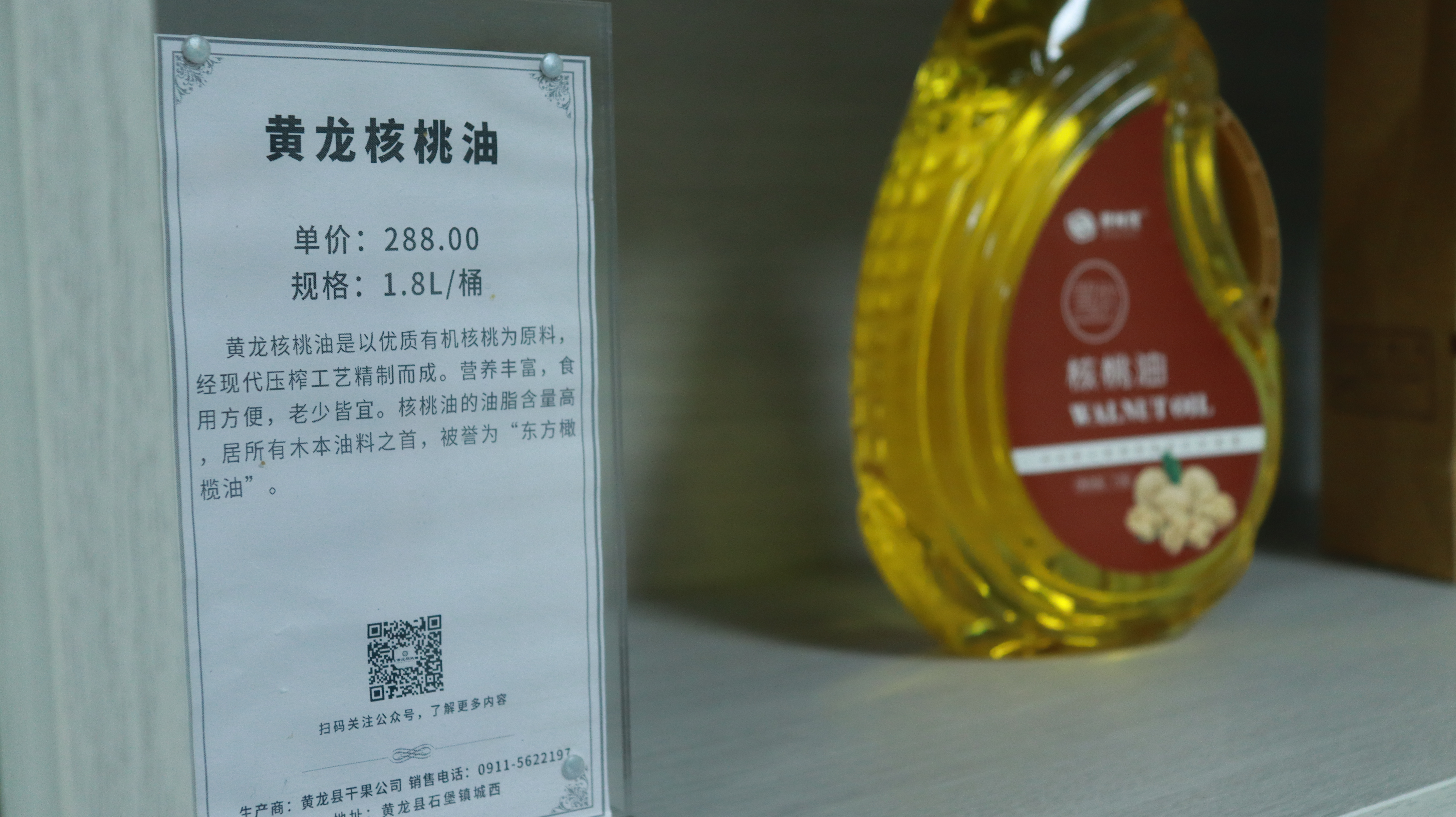 实践队前往黄龙县干果公司,探求核桃产业下游发展,了解核桃产品深加工形式。队员们看到了琳琅满目的核桃产品,包括干果核桃,核桃油,炒核桃仁,还有许多黄龙当地的其他农产品:羊肚菌、松茸菇、五谷、黄龙蜂蜜。2023年,黄龙县干果公司销量共计500万元。