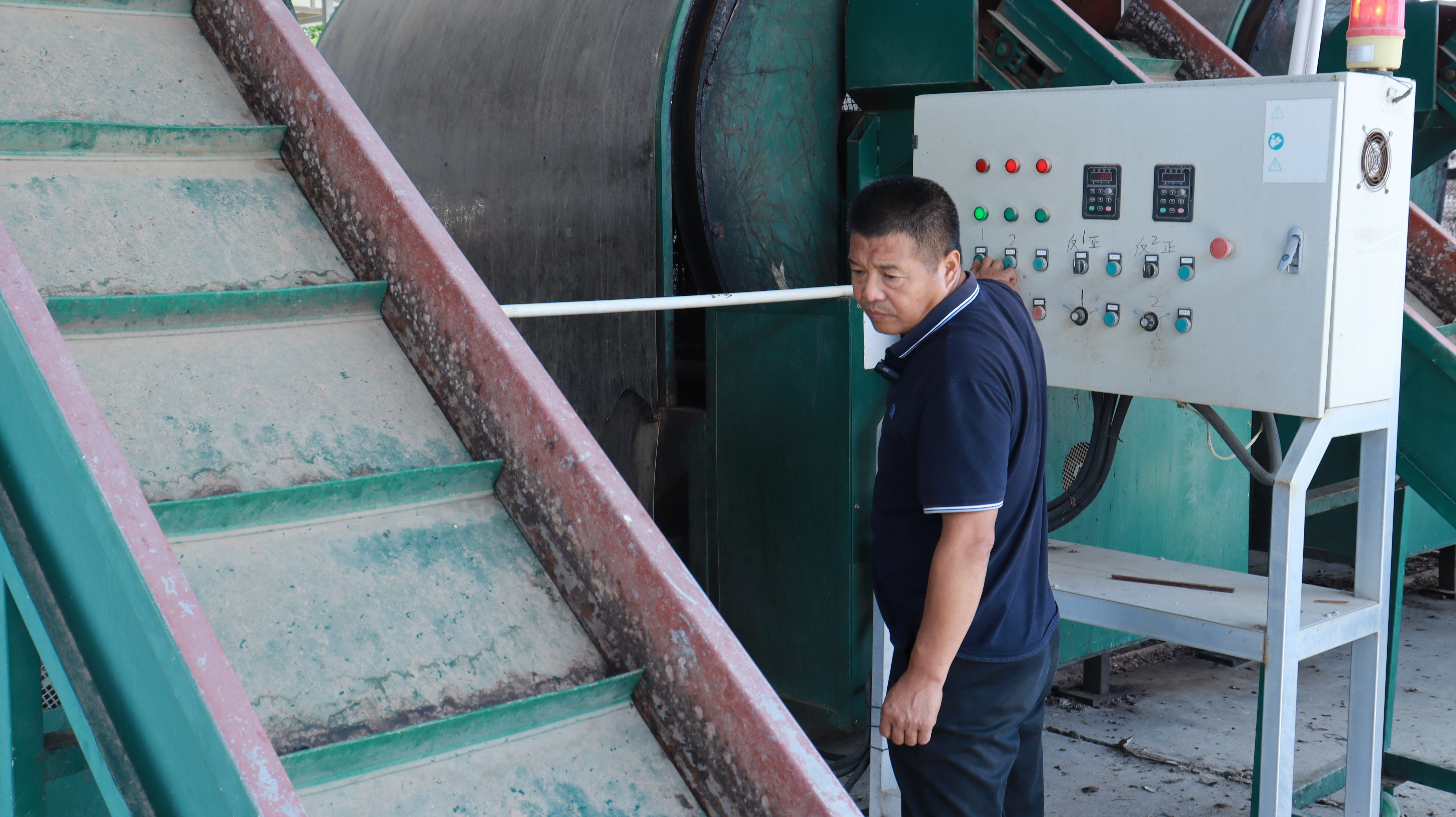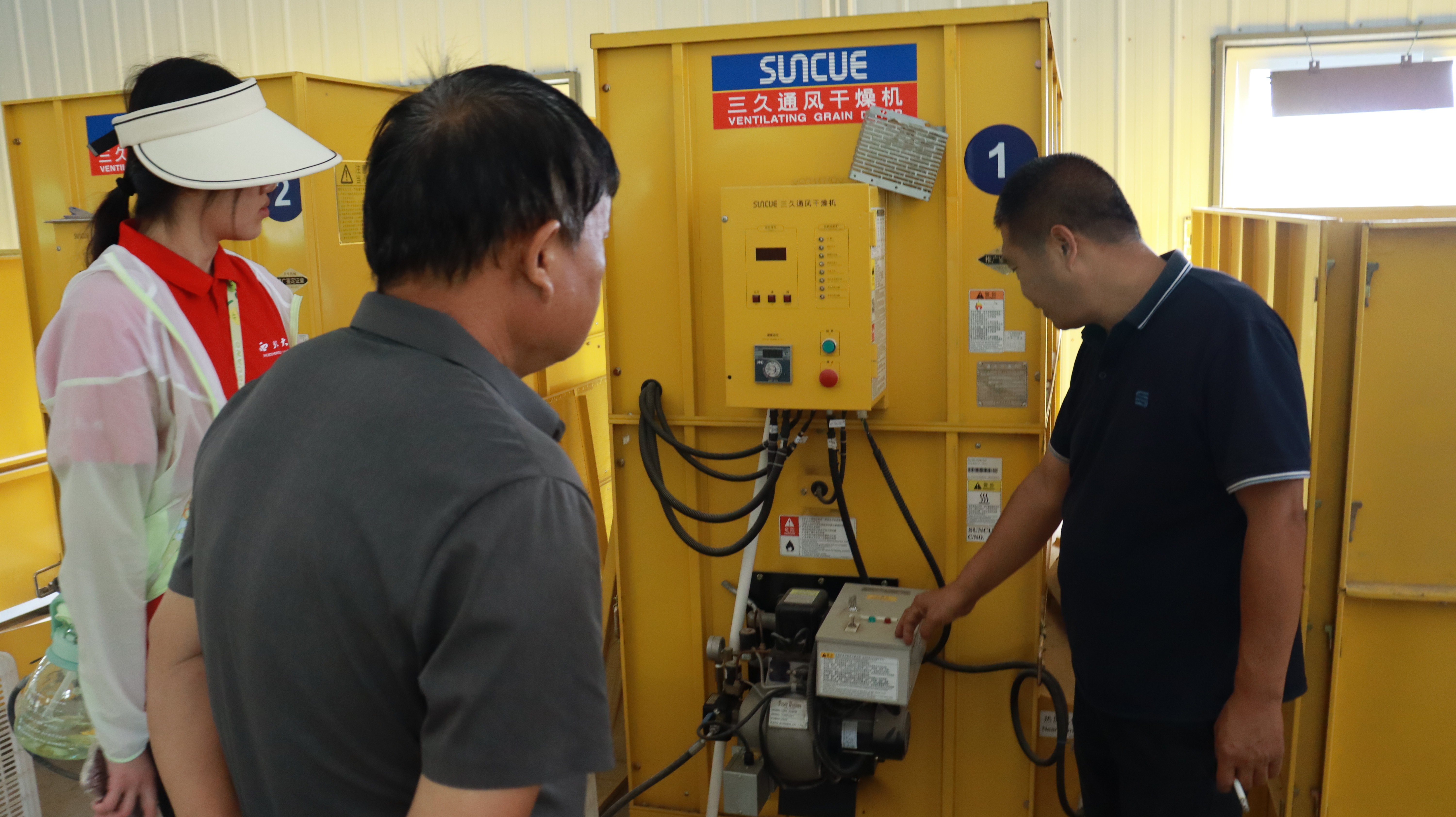 实践队员参观并操作核桃加工组合机床,其结合选品,褪皮,清洗,风干等工艺,一次可以产出核桃成品一百公斤,大大提高了核桃生产加工的效率。