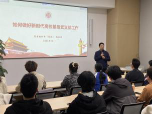 随后,校党委组织部副部长、党校副校长杨红涛为华大 创新班党支部讲授了一堂主题为“如何做好新时代高校基 层党支部工作” 的党课。杨红涛老师以三个引人深思的问题 “什么是党建工作? ”“ 一个基层党支部书记的作用有多 大? ”“什么样的党建工作才能称得上是好的党建? ”作 为切入点,巧妙地引出 了本次讲座的主题。讲解过程中,杨 老师围绕“《中国共产党普通高等学校基层组织工作条例》 基 本 解 读 ”“ 加 强 新 时 代高 校 基 层党 建 工 作 的 着 力 点”“高校党建工作实践的经验和启示” 三个篇章,为同学 们深入浅出地阐述了如何建设一个优秀的高校基层党支部。 他指出,同学们应当紧扣时代主题主线,严格遵循建设标准, 凝练支部的特色亮点,并不断增强创新意识。他还强调要积 极发挥新时代青年朝气蓬勃的力量,为高校基层党支部的发 展注入新的活力。
