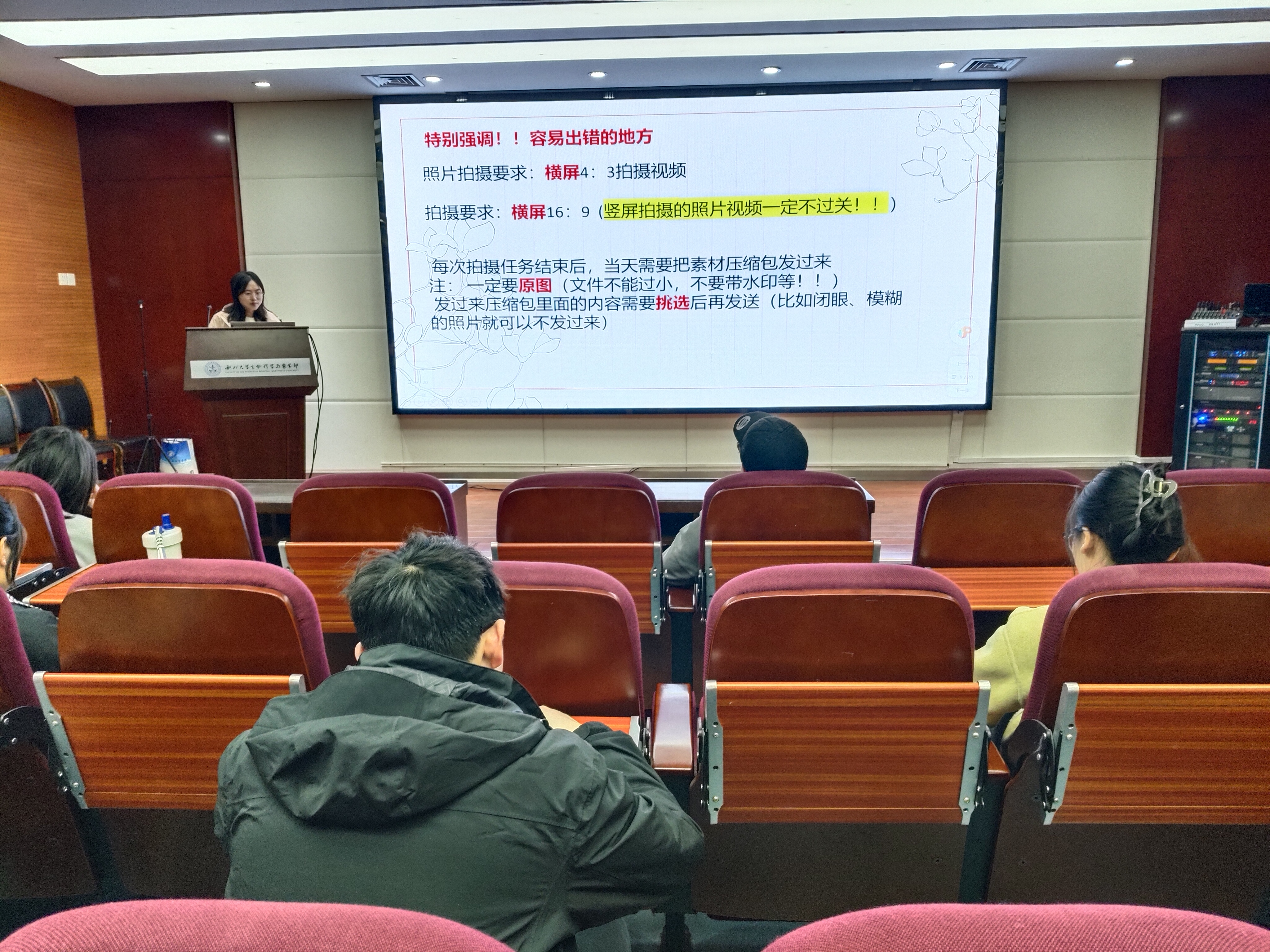 首先,网宣部负责人详细讲解了不同类型活动摄像摄影、海报制作的基本要求与技巧,强调了拍摄机位选择、构图、格式、色彩等诸多细节。在讲解过程中,结合实际案例,通过对比优秀与不足的作品,帮助工作人员们更加直观感受到技巧的实际运用。