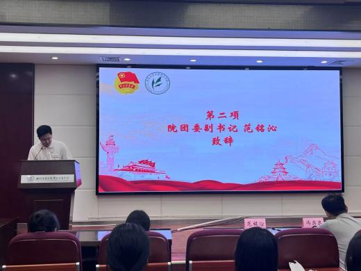 团委副书记范铭沁老师在致辞中全面回顾了学院共青团在思想引领、组织建设、实践育人等领域的奋进历程。作为深耕团学工作多年的资深辅导员,他始终坚持 “立德树人、实践铸魂” 的工作理念,带领团队取得显著育人成效。他向全体学员提出殷切期望,强调要珍惜培训机遇,通过理论课程夯实思想政治基础,以实践磨砺提升综合能力。