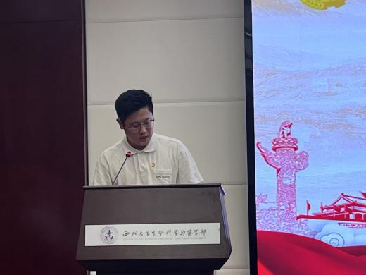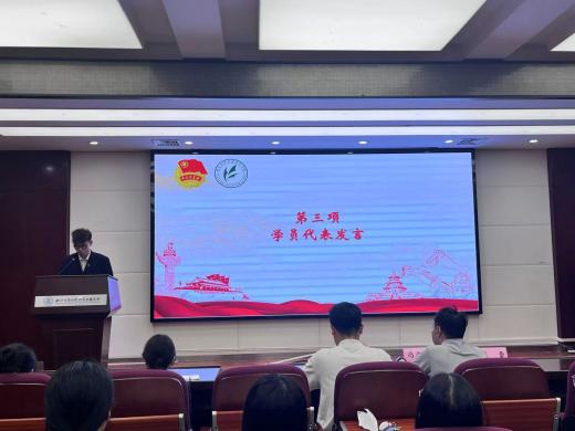 2024 级华大创新班马艺飞同学作为学员代表发言。他向全体学员发出倡议:严守培训纪律,深耕理论学习,主动将马克思主义立场观点方法转化为行动指南,同时深入基层开展调研,努力成长为 “有理想、敢担当、能吃苦、肯奋斗” 的新时代青年马克思主义者。