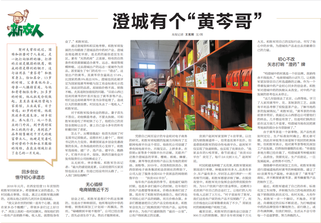 13 岁的时候,父亲离他而去,母亲一人操持家庭,与他和哥哥相依为命;20 多岁的时候,他从批发冷饮做起,直至在省城经营起 5家宾馆,立业成家,日子安逸;40 岁的时候,他毅然放弃优渥生活,回乡创业,再入农门。从一个农业的门外汉,到中药材深加工的践行者,再到农产品年销售额近千万元的致富带头人,他硬是凭着吃苦耐劳的个性和永不服输的闯劲,在农业领域打出了自己的一片天地