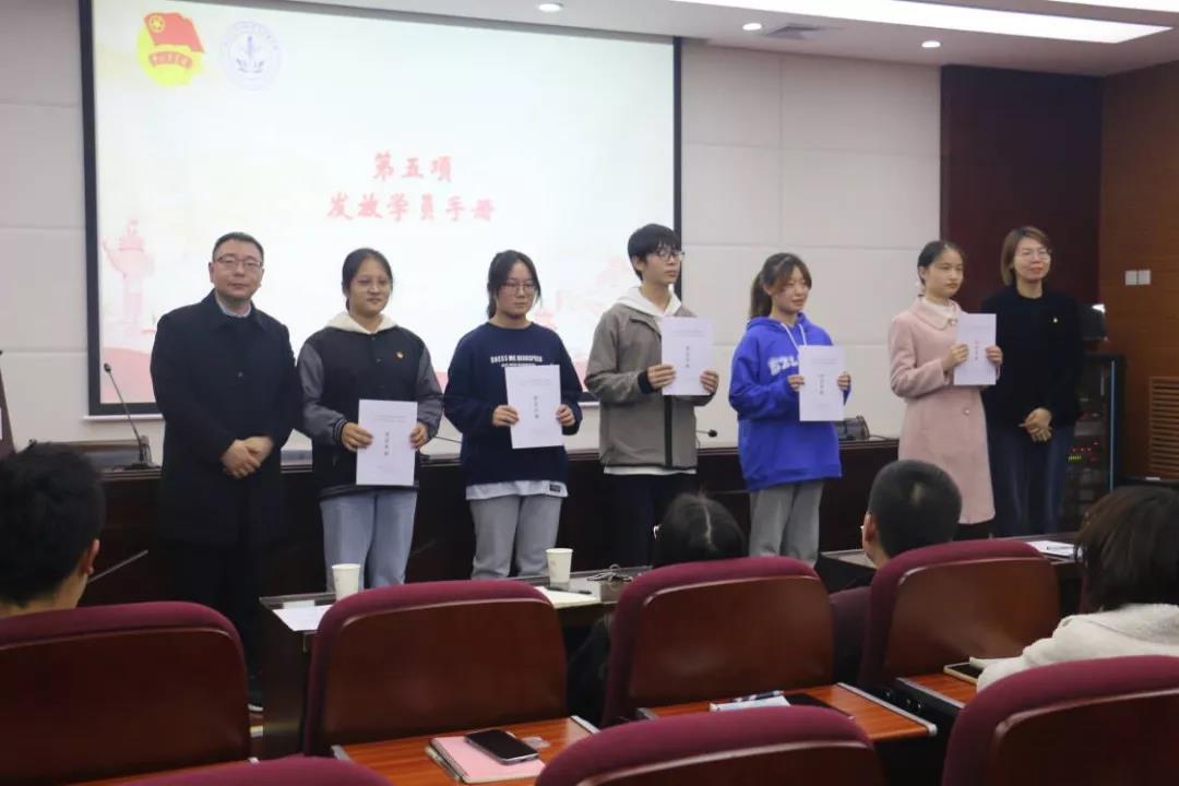 校团委副书记曹智和医学院党支部(直属)副书记杨涛为学员代表发放了学员手册。