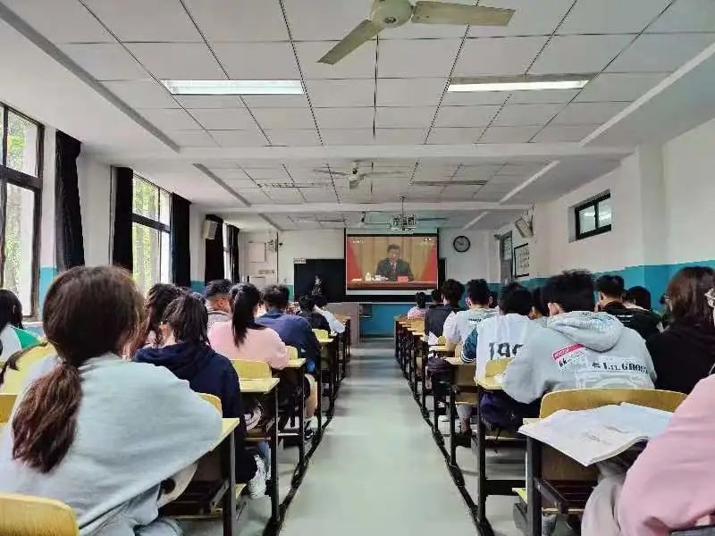 师生们认真聆听习近平总书记在庆祝大会上的重要讲话。习近平总书记的重要讲话饱含了党中央对青年一代的亲切关怀和对共青团事业的高度重视,为广大青年指明了奋斗目标和前行方向,为做好新时代青年工作提供了根本遵循。党旗所指就是团旗所向,党的奋斗主题就是团的奋斗方向。