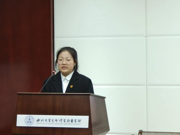 2021级生物科学(基地班)张丹妮作为本期青马班学生代表发言。她从自身实际出发,号召各位学员们在今后的学习生活中要更加严格地要求自己,牢记青年使命,把文化知识学习和思想道德修养、创新思维和社会实践、全面发展和个性发展紧密结合起来,切实做到德才兼备、知行合一、为成为一名优秀的青年马克思主义者而不断努力。