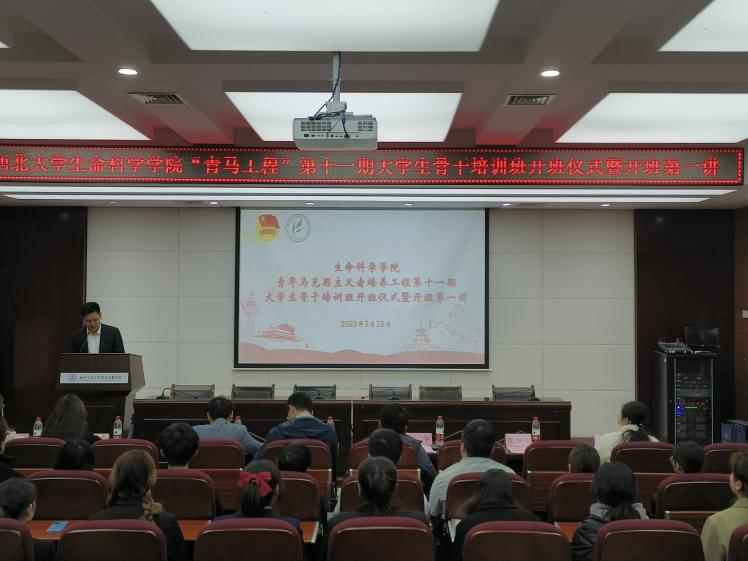 3月23日,生命科学学院青年马克思主义者培养工程大学生骨干培训班第十一期开班仪式暨开班第一讲在博望报告厅隆重举行。校团委副书记齐钊、学院党委副书记魏宁、学院团委书记冯奕忠、辅导员范铭沁、郭佳惠、刘凌飞、张芝榕以及全体学员参加了开班仪式。仪式由学院团委副书记范铭沁主持。