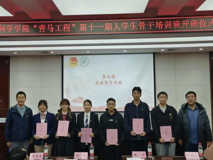 校团委副书记齐钊和学院党委副书记魏宁为学员代表们发放了学员手册。