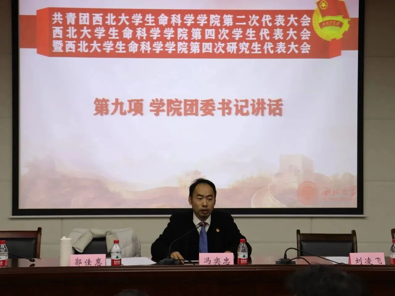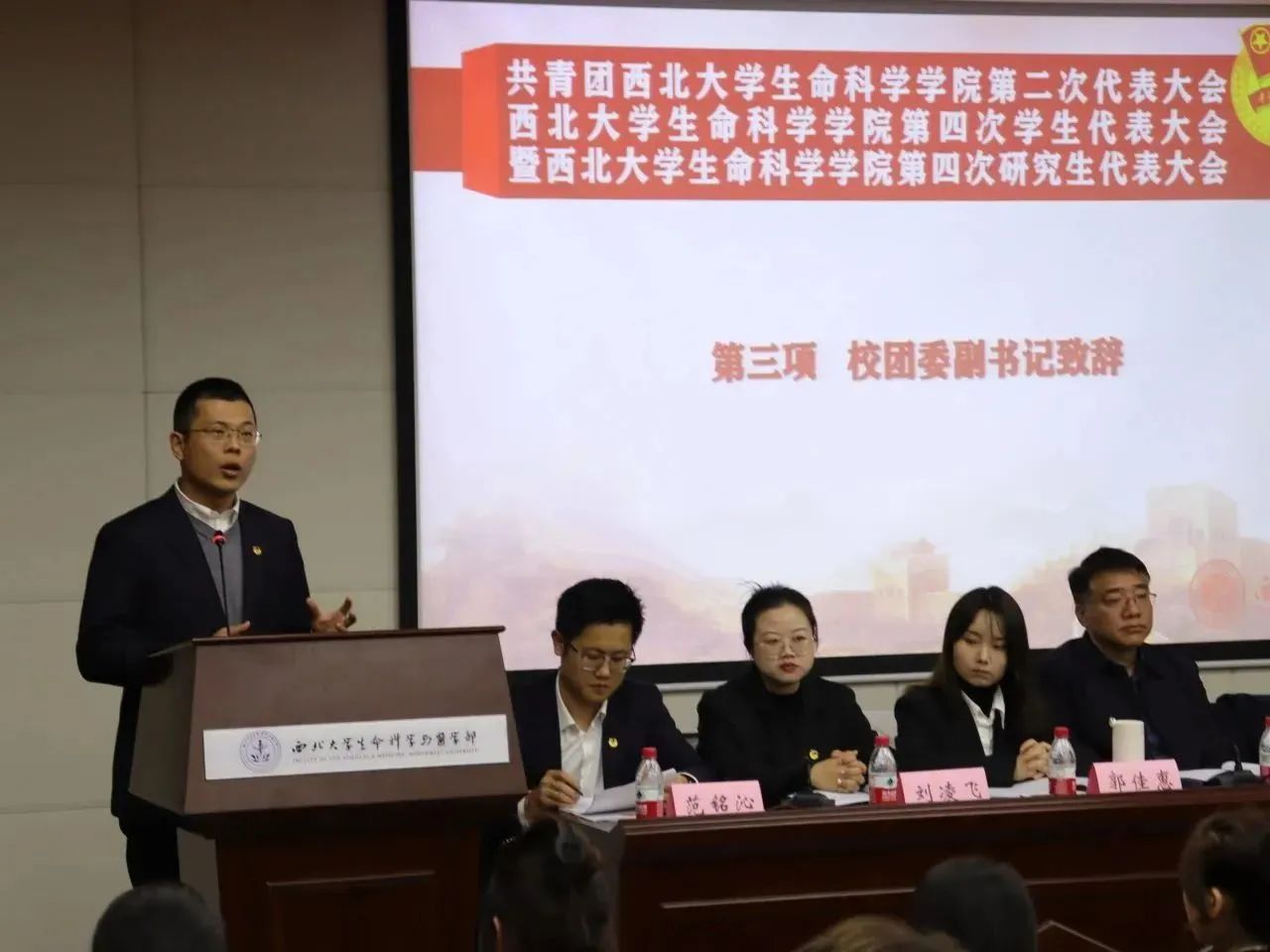 随后,校团委副书记齐钊代表校团委向大会的召开表示热烈的祝贺,他指出,生命科学学院团委、学生会、研究生会在学院党委和校团委的领导下,以习近平新时代中国特色社会主义思想为指引,按照学校、学院的整体部署和要求,认真履行工作职能,紧紧围绕学校中心工作,主动贴近学生实际,服务学生成长成才,在青年思想引领、校园文化、社会实践、创新创业、志愿服务、权益维护等方面开拓进取,成绩显著,为学院人才培养和事业发展做出了重要贡献!