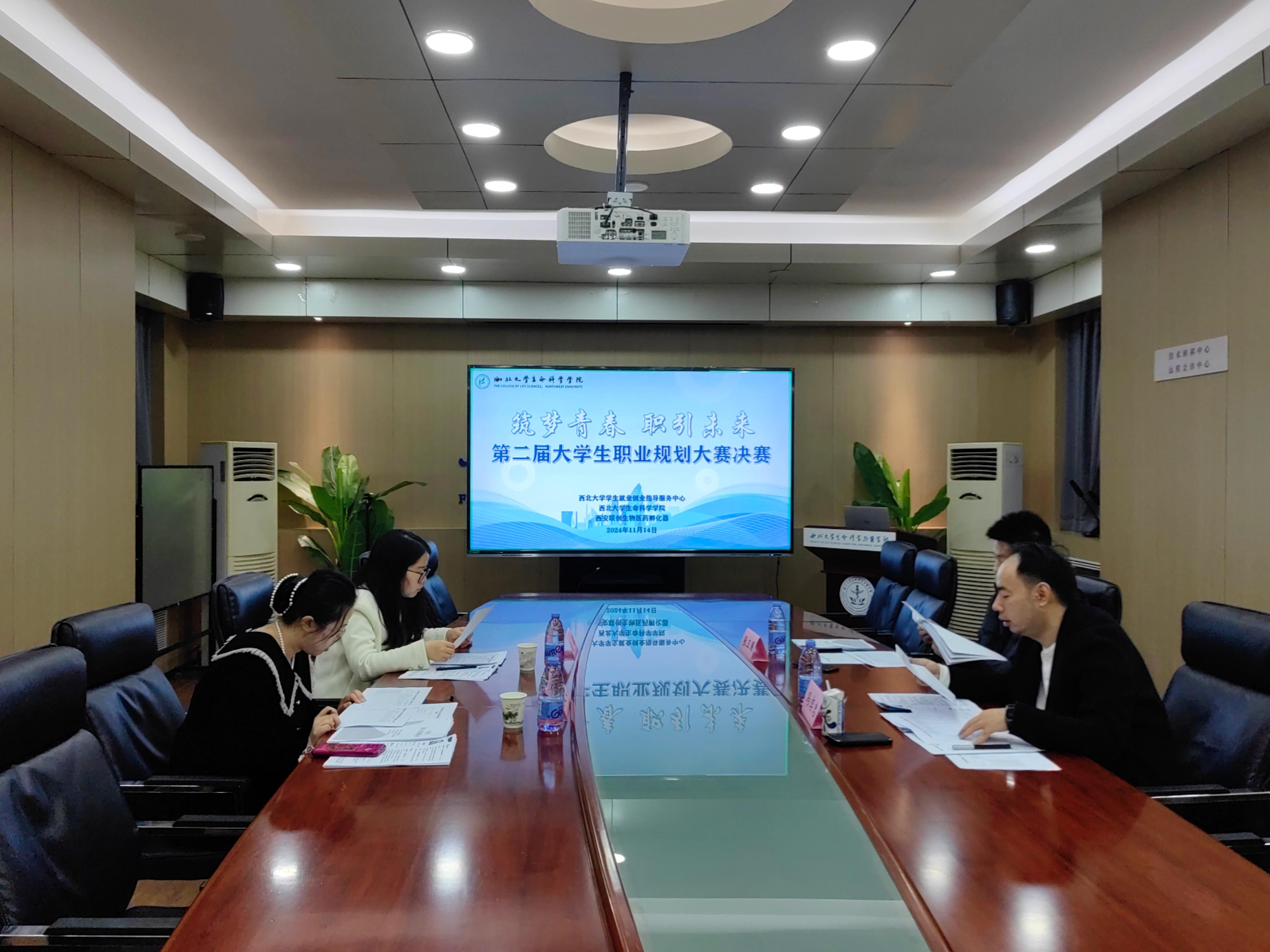 筑梦青春,职引未来。2024年11月14日晚,由“生启未来”职业生涯教育工作室牵头,学院第二届大学生职业规划大赛决赛于博望、博睿、博雅会议室同步举行。党委书记刘小光,党委副书记魏宁,校就创中心副主任米鑫、王伟,西安联创生物医药孵化器项目总监赵英,班主任、导师代表谭江丽、张卫国,“生启未来”职业生涯教育工作室成员老师们出席并担任评委。经个人报名、学院复赛,最终成长赛道23人、就业赛道15人,累计38名同学入围决赛,展开最终角逐。