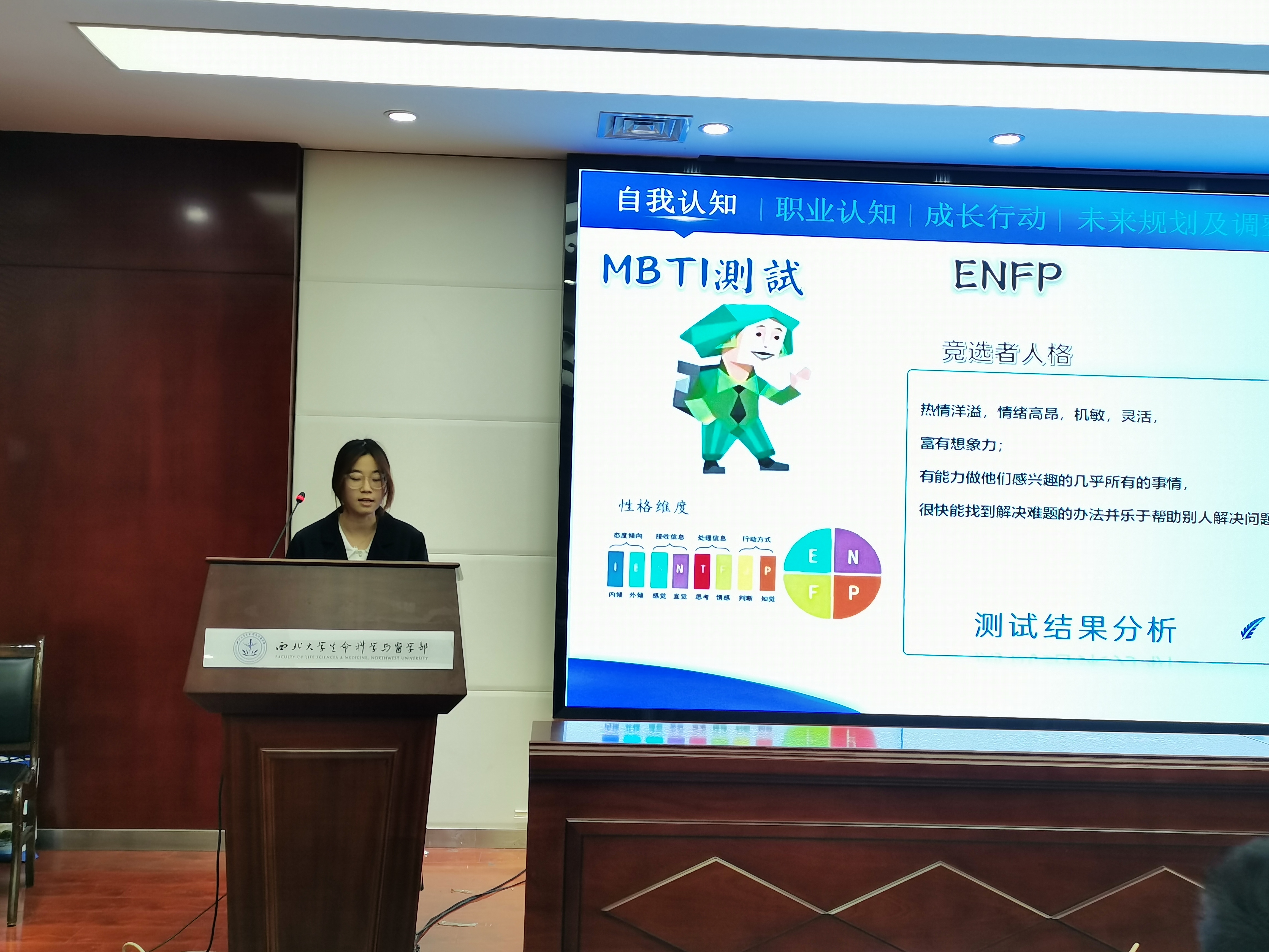 决赛正式开始之前,每场的评委老师代表首先向大家介绍了本次学院大赛的赛程概况,强调了决赛的形式、时间要求与评审标准等,鼓励同学们尽情发挥,赛出风采,赛出水平。决赛分为选手主题陈述与评委提问点评两部分组成,成长赛道主要考察参赛学生生涯发展报告与现场展示,就业赛道主要考察学生求职简历、辅助证明与现场展示。主题陈述环节,参赛学生逐一通过PPT的形式,结合所学专业与自身实际,成长赛道选手围绕职业认知、自我认知、学习实践行动、评估与调整等方面展示了各自的生涯发展规划,就业赛道选手针对职业要求、岗位胜任力、发展潜力等详细介绍了个人求职意向和职业准备情况。选手们自信大方、青春热情、思路清晰、陈述流畅,充分展现出了青年学生追梦、逐梦的奋斗历程和新时代的青年担当。