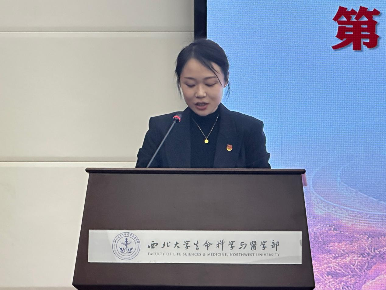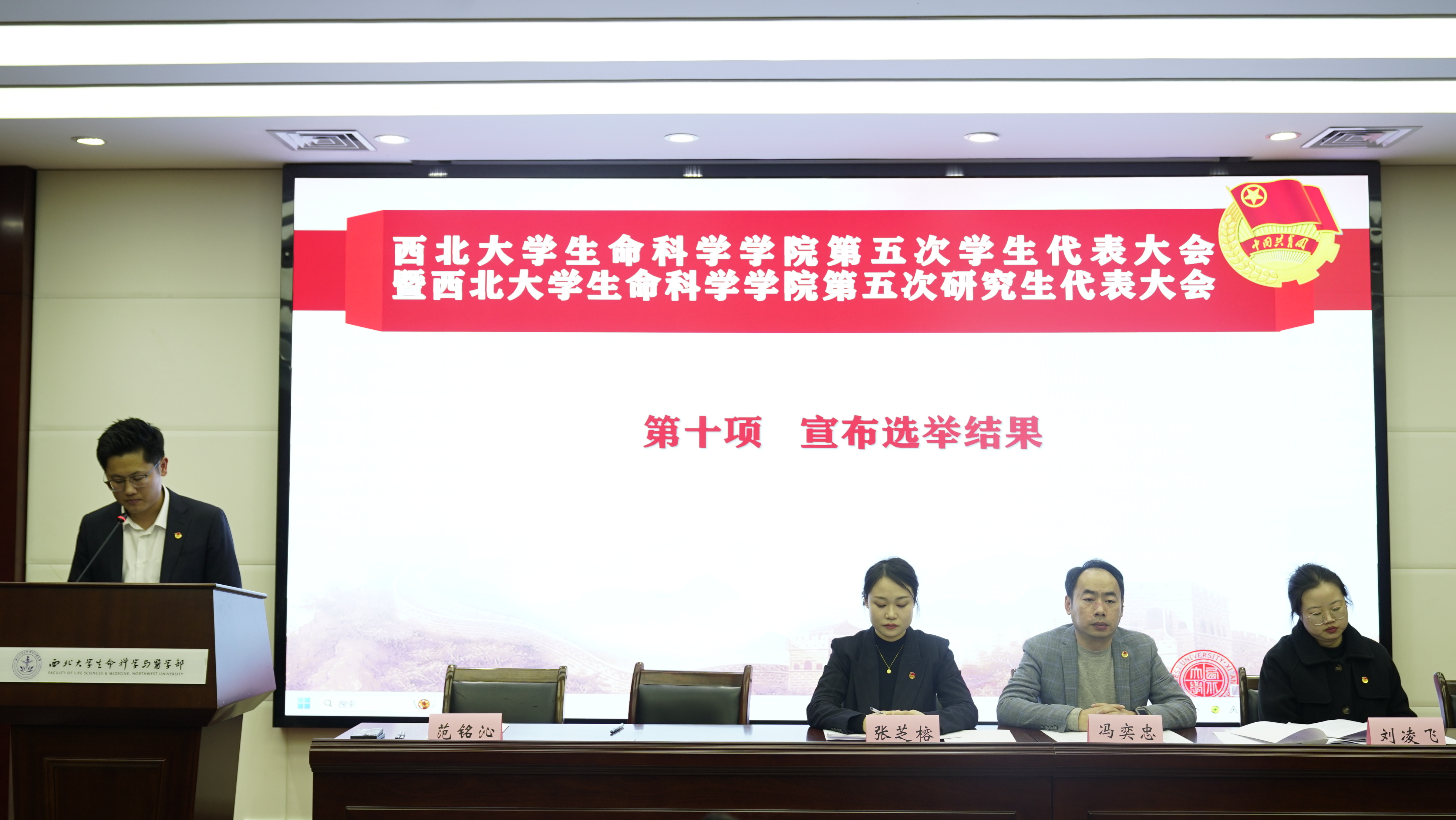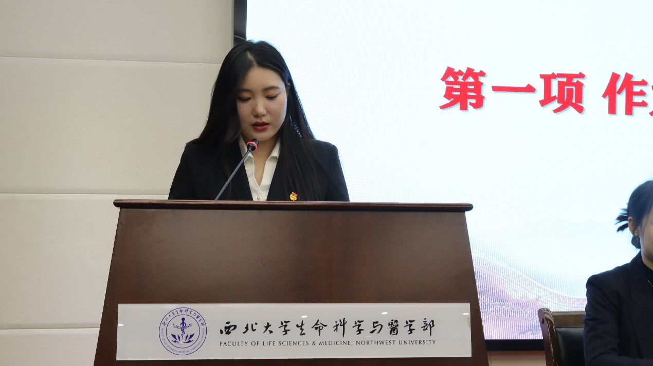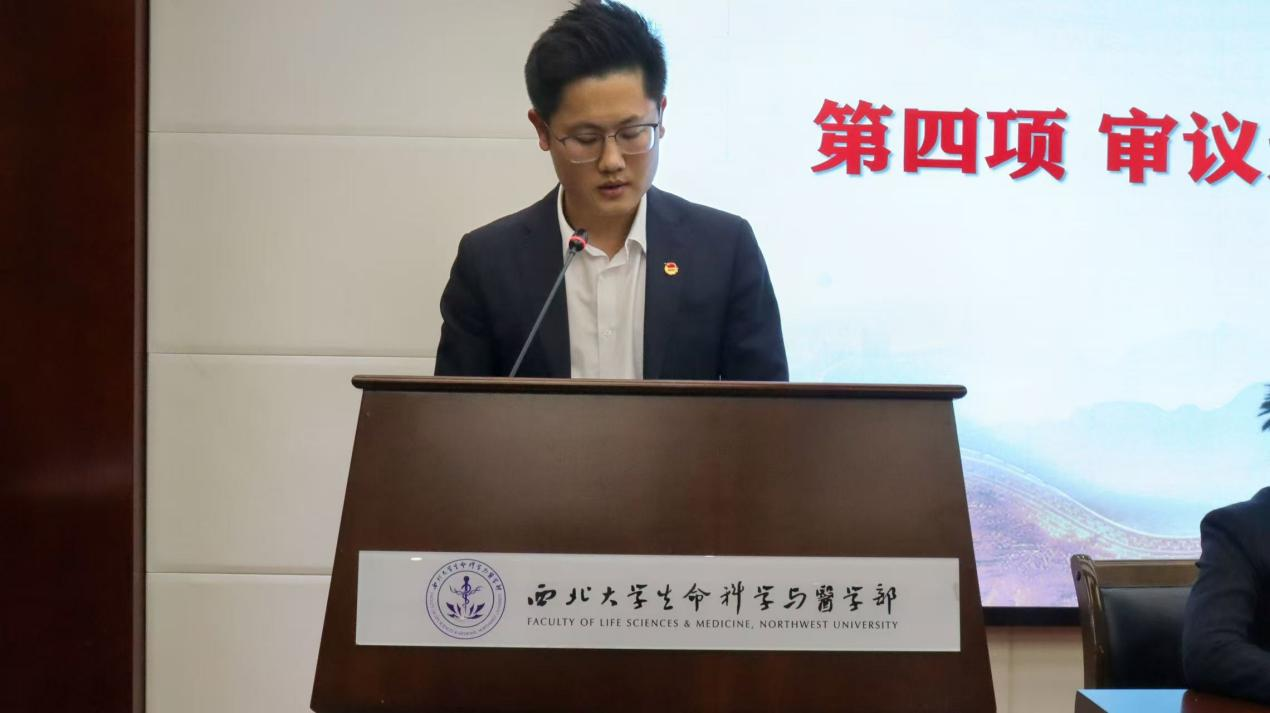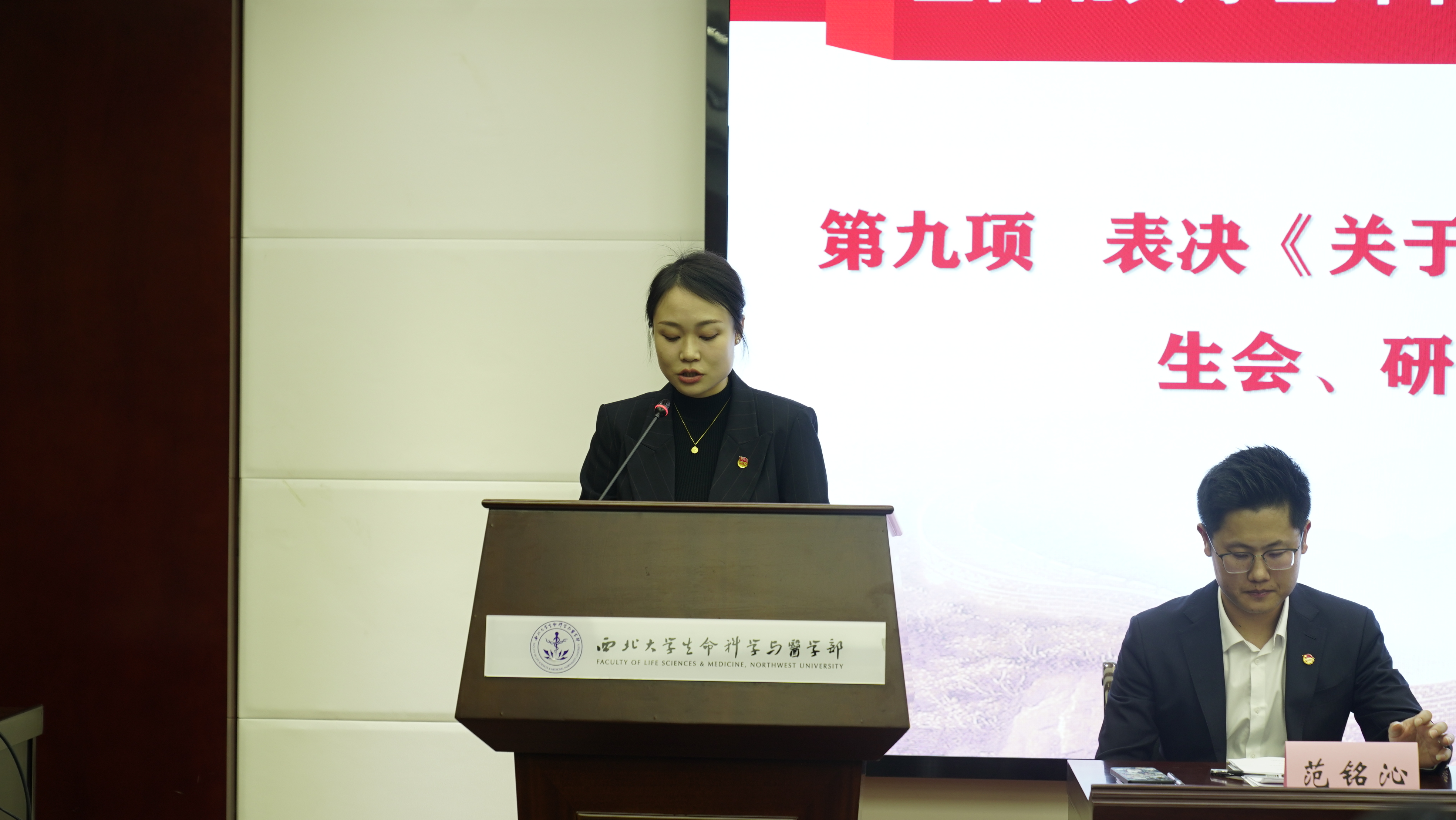 紧接着,西北大学研究生会主席团成员高梓伦同学代表校学生会、校研究生会向大会的召开表示热烈的祝贺。他表示,在校、院各级团委的悉心指导下,生命科学学院学生会、研究生会开展了诸多富有成效的工作,并斩获了优异的成绩。一切成就均源自于持续不懈的接力奋斗。他衷心期望生命科学学院学生会、研究生会能够凝聚起全院同学的力量,充分彰显出青年学子生机盎然、积极进取的精神风貌。切实践行带头引领之责,在全力推动中华民族伟大复兴的壮阔历史征程里,镌刻下更为绚烂耀眼、璀璨夺目的青春印记,谱写一曲激昂澎湃的青春华章。