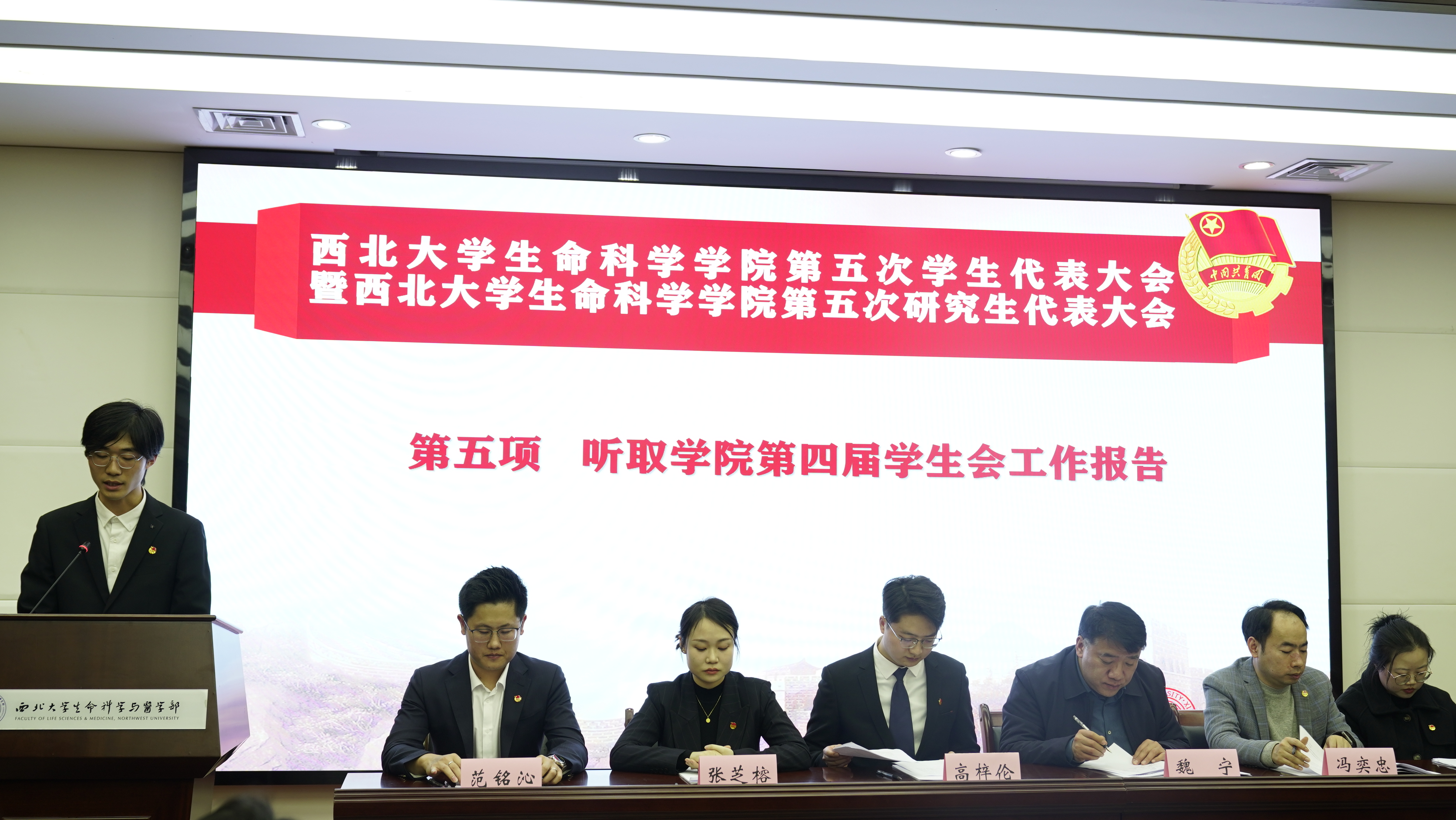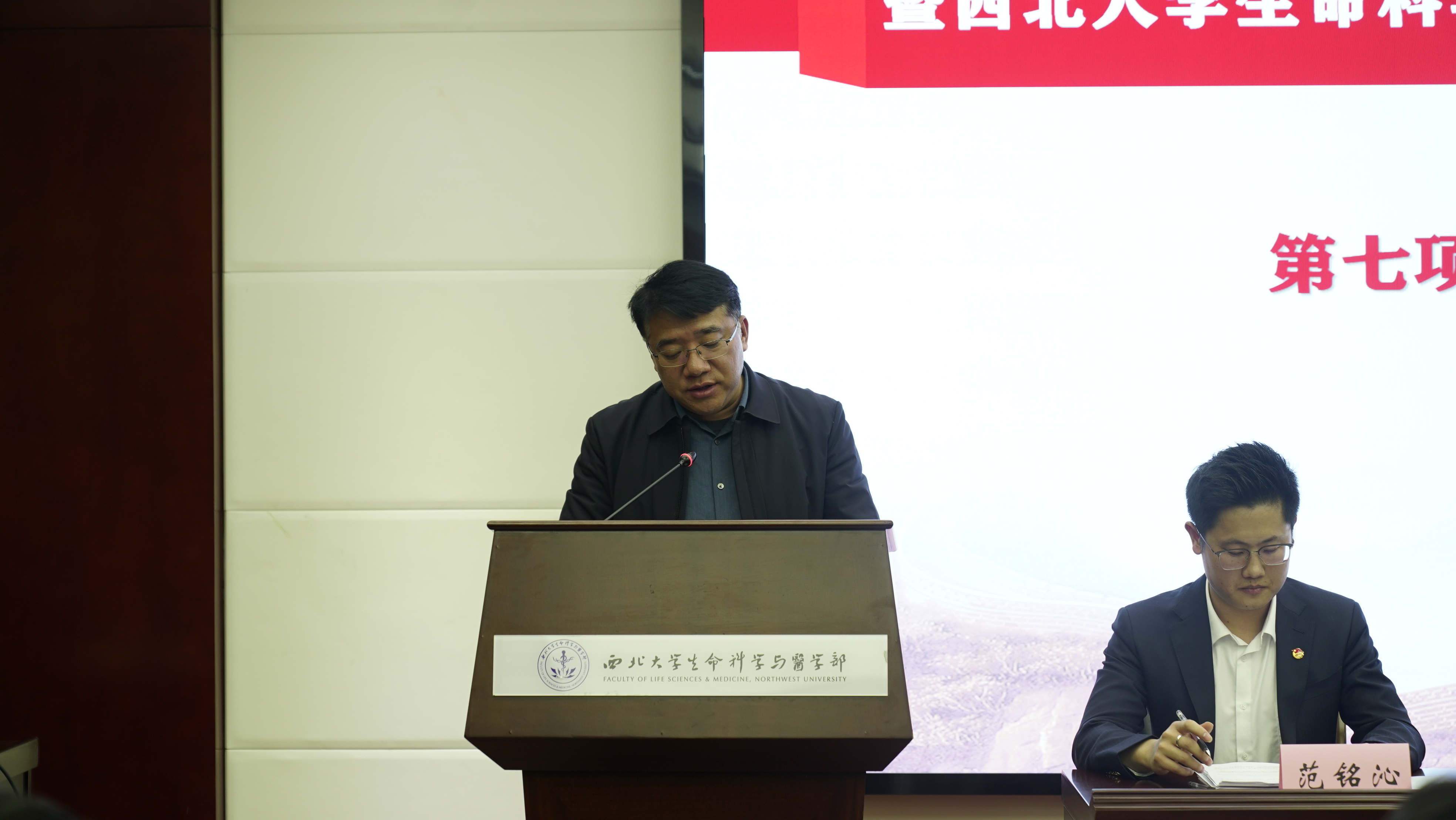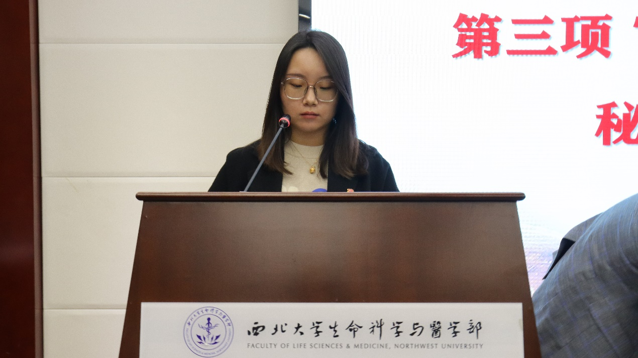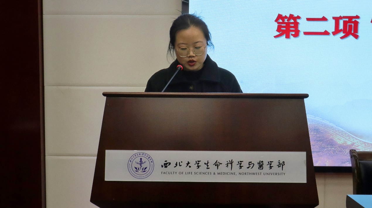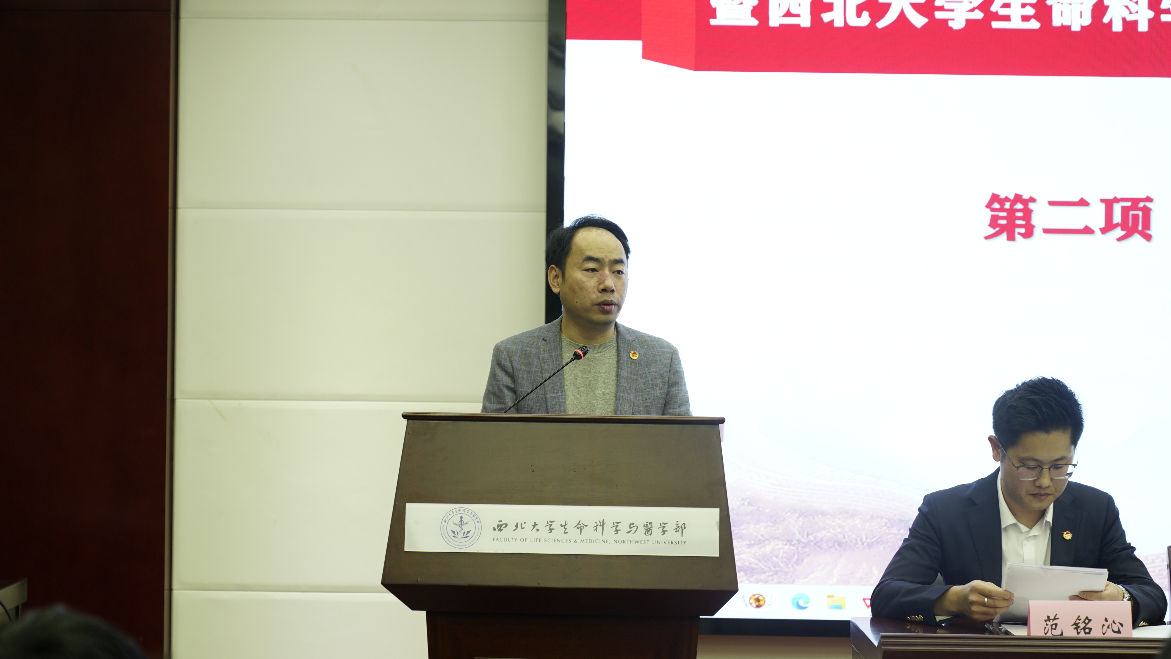 紧接着,西北大学研究生会主席团成员高梓伦同学代表校学生会、校研究生会向大会的召开表示热烈的祝贺。他表示,在校、院各级团委的悉心指导下,生命科学学院学生会、研究生会开展了诸多富有成效的工作,并斩获了优异的成绩。一切成就均源自于持续不懈的接力奋斗。他衷心期望生命科学学院学生会、研究生会能够凝聚起全院同学的力量,充分彰显出青年学子生机盎然、积极进取的精神风貌。切实践行带头引领之责,在全力推动中华民族伟大复兴的壮阔历史征程里,镌刻下更为绚烂耀眼、璀璨夺目的青春印记,谱写一曲激昂澎湃的青春华章。