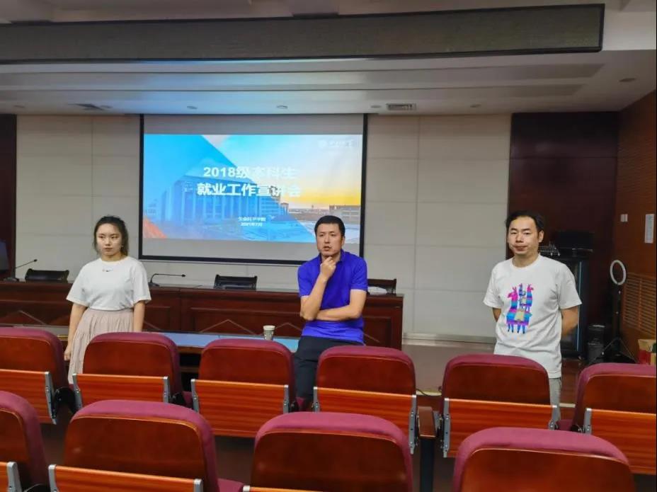下午,毕业本科生就业宣讲会在博望报告厅举行。辅导员郭佳惠首先说明了本次宣讲会的重要意义,本科生教务雷重涤老师针对学院本科生培养方案向同学们详细解读,尤其强调了毕业生选课、重修、毕业设计、体测等方面的注意事项,提醒同学们严肃严谨,认真对待,接着,冯奕忠老师重点强调了保研、考研及就业过程中的一些关键点,他鼓励同学们认清升学形势,早选导师,选对导师,务必坚持,踏踏实实地赴好研途。