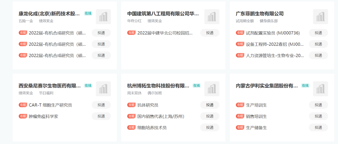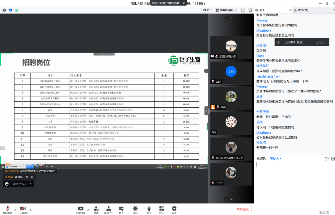 招聘会共有11家企业参与宣讲,提供岗位65个,拟招聘257人,岗位覆盖西安、苏州、上海等地,涉及材料、药学、有机化学、医学、临床医学、细胞生物学、机械电子、生物工程、生物技术、生物信息等二十余个专业。各企业负责人在线介绍企业信息并公布招聘职位,宣讲完毕即时与学生进行对话答疑,实现了高效沟通。我院广泛动员相关专业毕业生积极参与,力求学生能充分匹配用人单位和就业岗位。
