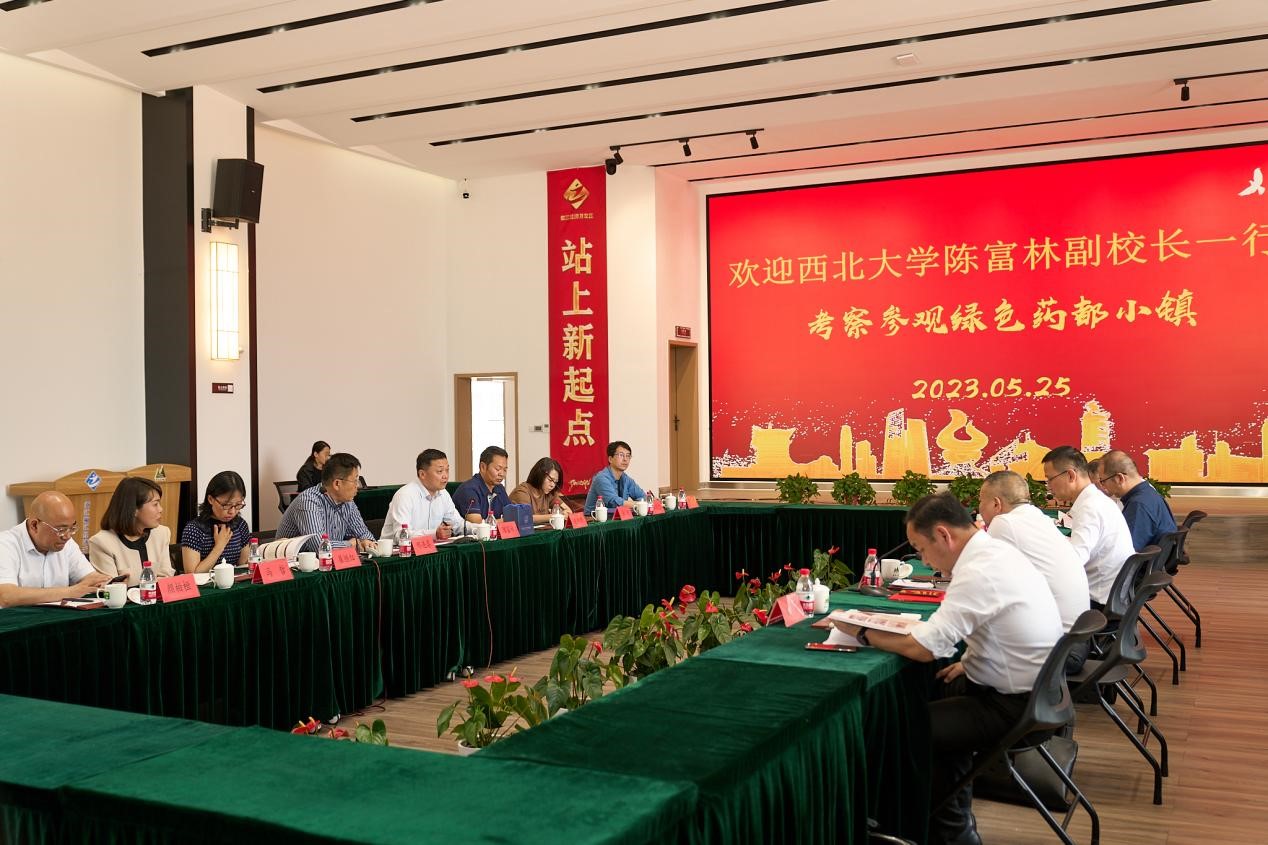 在台州,陈富林一行先后调研了浙江耶大生物医药有限公司、浙江海正药业股份有限公司、浙江九洲药业股份有限公司三家企业,了解了各家企业的创业历程、发展现状、大学生就业情况及产学研合作需求,随后于椒江绿色药都小镇举办西北大学-椒江区政府专题座谈会,台州椒江区区委书记林强、副区长陈建国,政府相关部门负责人,浙江省中小企业协会大健康专委会秘书长马哲、主任宁柯,浙江耶大生物医药有限公司董事长颜柏桓出席。会上,陈富林表示,当地具有非常良好的生物医药企业集群,在校地合作背景下,双方在创新平台搭建、重点项目策划、高端人才引进等方面有很大的合作空间,希望能有更多的西大成果和人才在台州落地生根,真正实现校、地、企三赢。双方围绕合作机制、实现路径、成果转化、人才引进等方面交换了意见,达成初步合作意向。