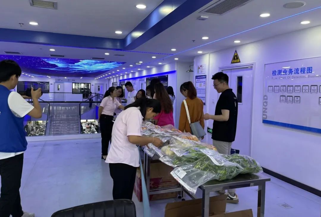 随后在企业工作人员的带领下,大家走进国联质检数字化实验室和国联科普教育基地,一同参观了国联质检认证展、农产品检测实验室、微生物检测实验室等,对国联集团的发展战略、业务布局进行了全面的了解,明晰了国联科普教育基地的科普产品及基地概况。通过工作人员的具体讲解,不少同学亲自动手,体验了放置时间不同的大米、不同新鲜程度的牛奶等趣味快检,零距离接触了检验检测,体验到了检测的神奇和乐趣。
