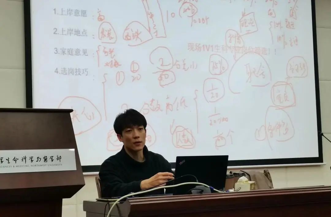 为进一步做好2024届毕业生就业工作,提高学院就业指导服务的针对性与实用性,结合毕业生公考意向征集结果,11月12日,我院联合粉笔公考,于太白校区博望报告厅举办第二届“生命科学+”公考训练营。邀请粉笔师资贺垚老师,以“生物医药类考情备考指导”和“行测备考指导”为主题,分上、下午为毕业生作指导讲座。40余名毕业生现场参与,活动由就业服务部工作人员主持。