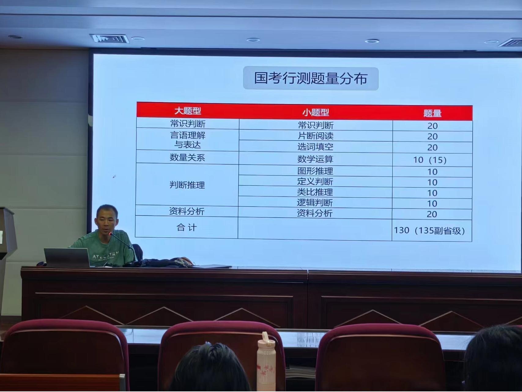 李老师详细解读了国考行测题量分布,包括常识判断、言语理解与表达、数量关系、判断推理和资料分析等题型,分析了省考行测题型分布、事业单位职测题型分布及陕西选调生笔试考情,帮助同学们全面了解考试内容,为同学们的报考和复习提出了针对性的建议和意见。在备考指导上,李老师分享了提高做题速度和准确率的策略,引导同学们掌握好做题节奏,学会选择性放弃,认真备考、科学应试,同时鼓励大家如确定备考,一定要坚定信心,合理安排时间,积极应对考试过程中的各种挑战。