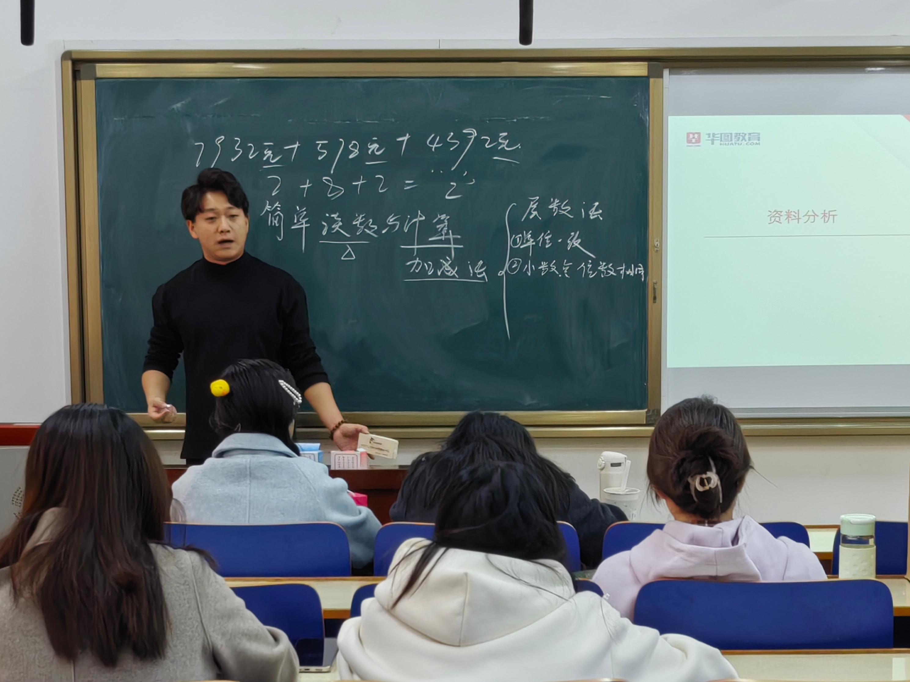 11月9日下午,张昭辉老师通过生动的案例分析,深入浅出地讲解了数量关系、资料分析中的基础概念、常见题型及解题策略,强调了在理解原理基础上灵活运用公式的重要性。张老师首先提出用“放缩法”对数量关系中的常见题型“基期量计算”进行解题,并结合例题进行演示。一是对题目进行分析,其题型特征为:基期时间描述+主语的具体量,随后引出计算公式,将该题型分为两种解题思路“整数放缩法”与“百化分放缩”,之后对两种解题思路分别进行例题讲解,然后让同学们对两种方法进行应用,帮助大家更有利于掌握“放缩法”。接着张老师又提出另一种题型“基期和差问题”,分别从量级、分数性质、横向倍数、美分法四种情况进行细致讲解。通过几种常见题型的讲解,使同学们对于这类题目有了初步了解。