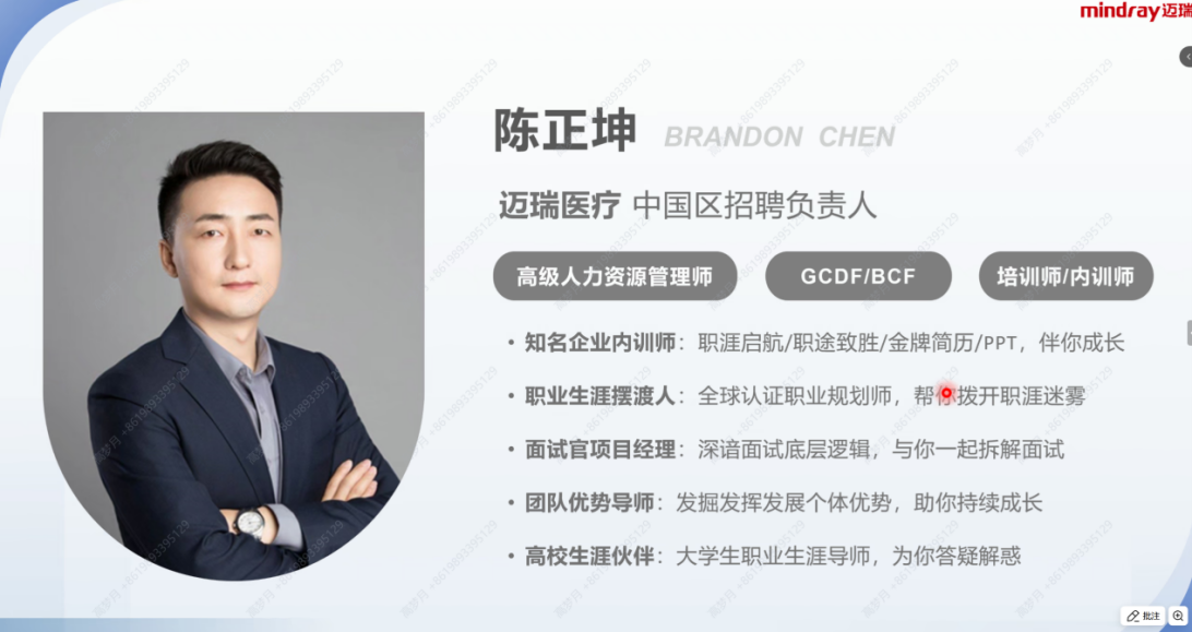 为提升就业竞争力,助力大学生高质量充分就业,4月3日下午,学院举办2025届求职训练营第三期,邀请迈瑞医疗中国区招聘负责人陈正坤作为主讲嘉宾,以“大学生就业实战交流”为主题,从企业的视角对校招的各个环节进行讲解与指导。本次讲座采用线上、线下结合的方式,毕业年级、低年级共60余名学生参加,活动由就业专干张芝榕老师主持。