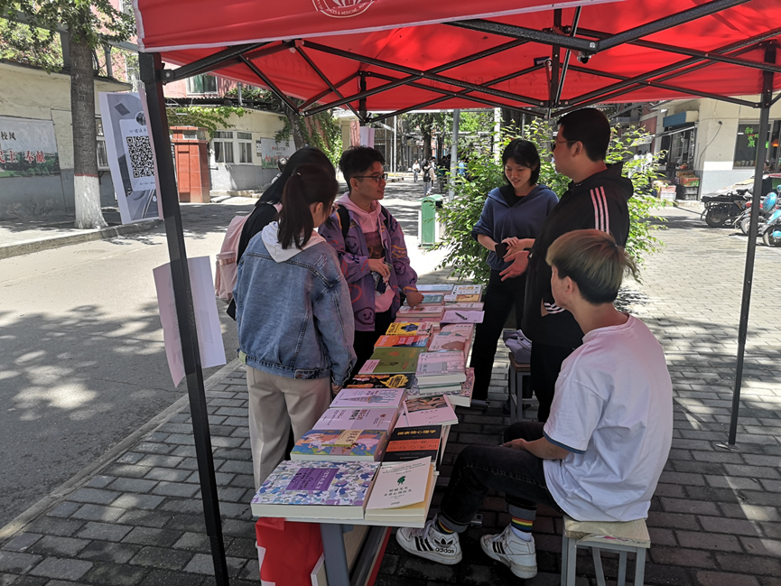外展时,心协的工作人员们提前在桌子上摆满了各种各样心理学方面的书籍,路过的同学不断被吸引,纷纷上前询问,心协的同学分别为大家耐心讲解着活动的流程。随后,有意愿的同学选取了各自想看的书,并进行现场登记、加入群聊,很快,满满一桌子的书几乎全被借走,活动由此落下帷幕。