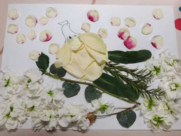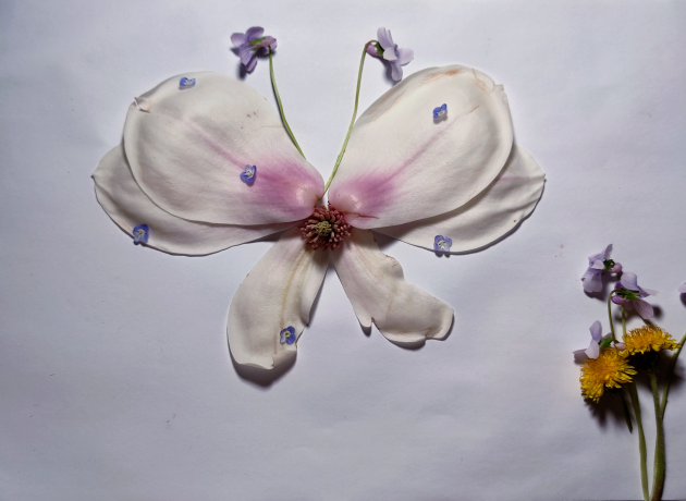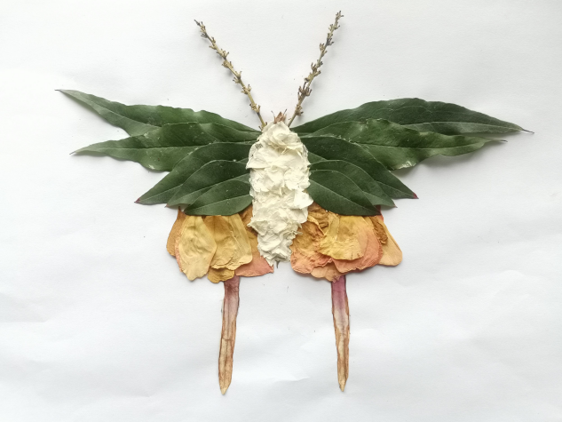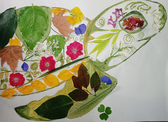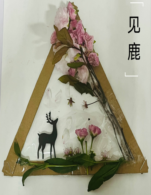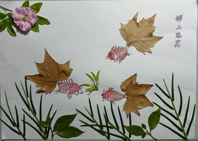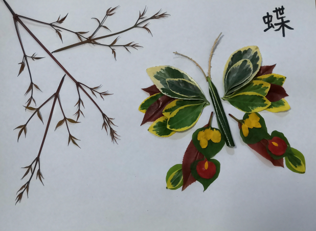 用形态各异的树叶、色彩缤纷的花瓣