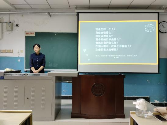 张老师首先从“舒适区”引入,通过讲述一个社会功能受阻但不敢寻求心理帮助的大学生案例,强调同学们在进入新环境后,跳出“舒适区”、适应新环境是必经过程。张老师引导同学们用20个形容词概括自己,找寻三个“我”,即真实的我、理想的我、别人眼中的我,以便充分了解自己。