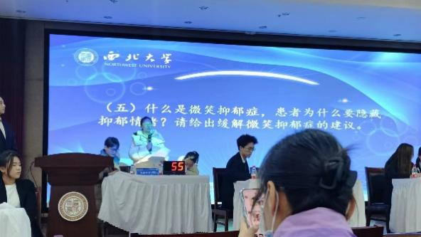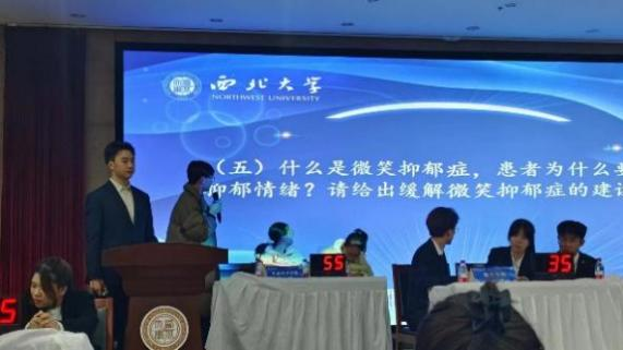 全场比赛分为“小试锋芒”、“奋勇争先”、“明察秋毫”、“迎难而上”四个答题环节,每个环节都是对参赛者知识水平、心理素质和应变能力的全面考验。学院代表队成员曾丽霞、孙朔、杜生田三位同学在各个环节,镇定自若,思路清晰,表现出色,得到了评委老师的肯定,展现了他们深厚的心理科普知识储备和强大的心理素质。