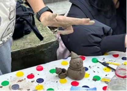在轻松愉悦的氛围下,比赛正式开始,同学们热情高涨,积极发挥自己的聪明才智,运用捏、压、刻、画等技法与泥土互动,着力打造泥人形状,以创作出令自己满意的手工作品,令人应接不暇,整个活动现场弥漫着欢声笑语,充满了创造激情与创新活力。