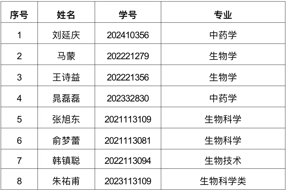 生命科学学院2024年“西北大学 ‘玖熙健康’奖学金”拟推荐名单公示