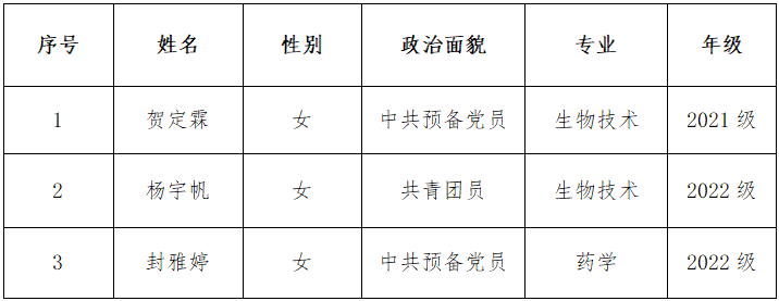 生命科学学院第七届感恩中国近现代科学家奖助学金拟推荐人选