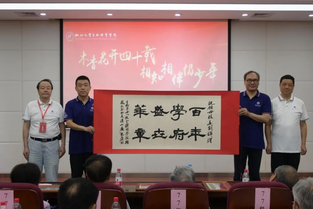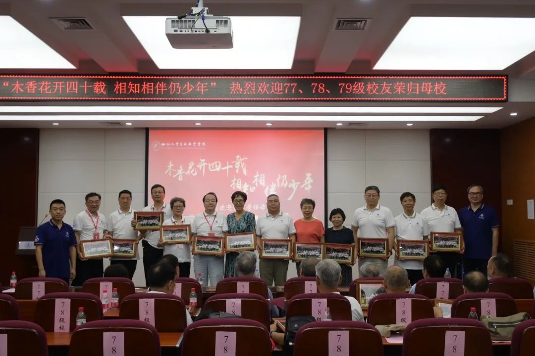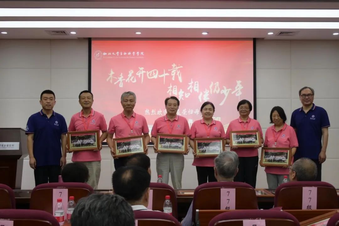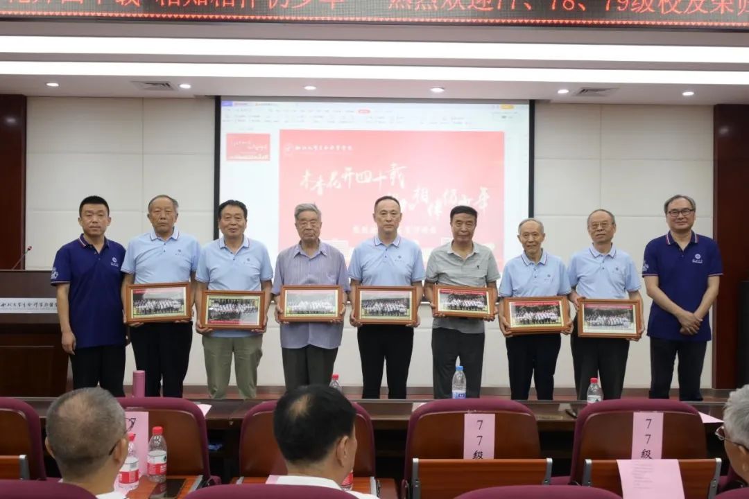 与会校友共同观看《时光不老 岁月不忘》纪念视频,通过一张张珍贵的老照片重温了求学期间的青春岁月。学院为每一位校友赠送纪念品,1978级校友代表尉亚辉、李新生代表返校校友向学院送上纪念品,祝福母校和学院再谱华章,再创辉煌。