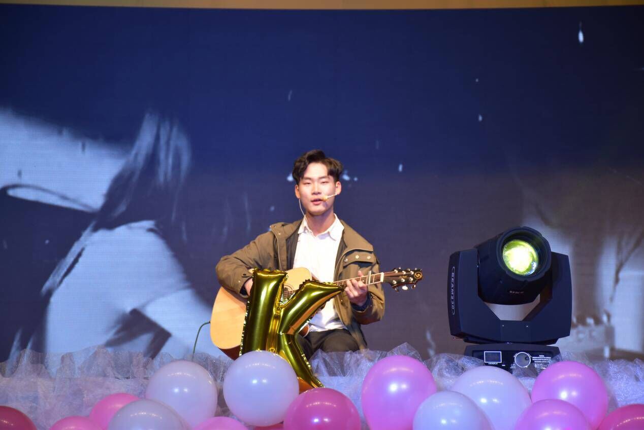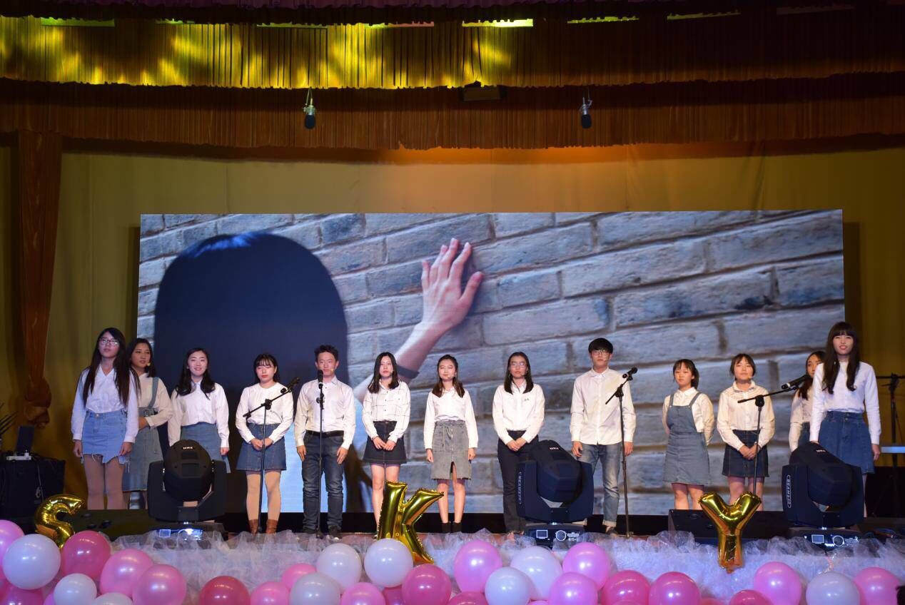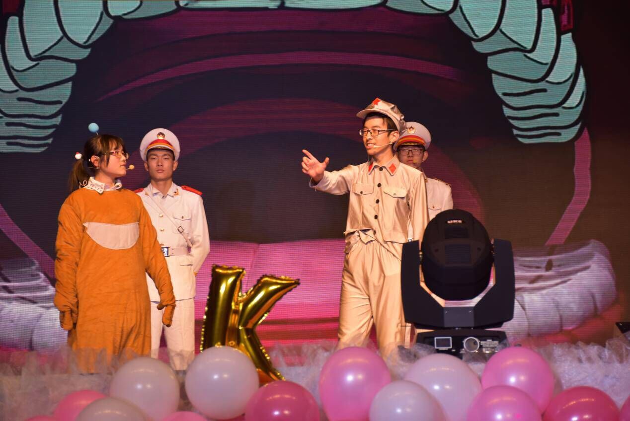 在颁奖仪式之后,晚会以动感十足的歌曲串烧华丽开场,炫丽的灯光,酷炫的背景画面,劲爆的音乐完美结合,瞬间点燃全场的气氛。开场视频中学院领导对学院(系)成立80周年、2017级新生、晚会的祝福和全体新生的创意摆拍赢得观众的阵阵掌声,由此晚会正式开始。