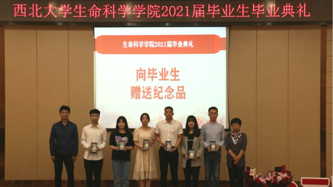 步怀宇老师和张杰老师向毕业生代表赠送纪念品